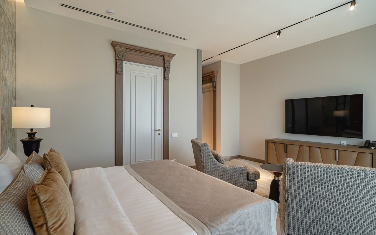 Площадь номера - 200 кв.м. 6 осн. мест. 1 доп. место. Мебель: вешалка, диван, зеркало, кресло, кухонная мебель, прикроватные тумбочки, стол, стулья, тумба, шкаф. Мини-кухня. Оборудование: кондиционер, телевизор, холодильник, электрочайник. Санузел: с душем, туалетные принадлежности, фен. Сервис: Wi-Fi бесплатно, смена полотенец, смена постельного белья, уборка номера. Терраса.
